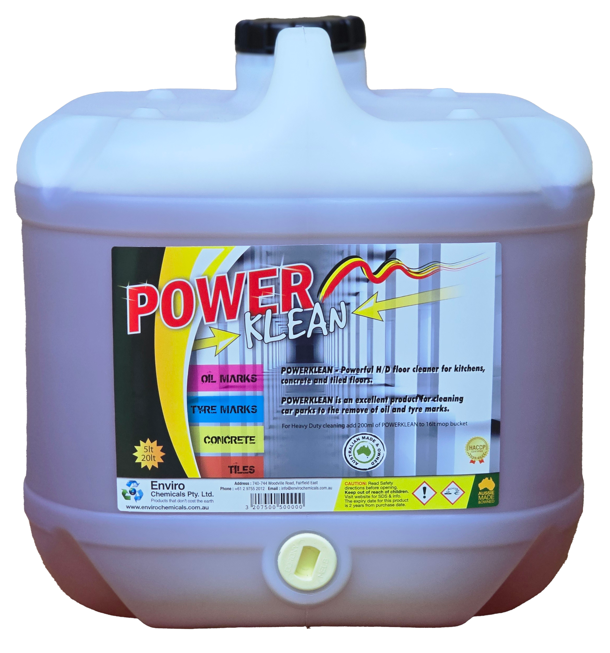 POWERKLEAN is a super strength very powerful solution, especially to remove Grey & grimy buildup, oil and tyre marks from tiles and concrete floors. POWERKLEAN has been use as a H/D floor cleaner in kitchens.POWERKLEAN is an excellent product for cleaning oil and tyre marks in garages And carparks.